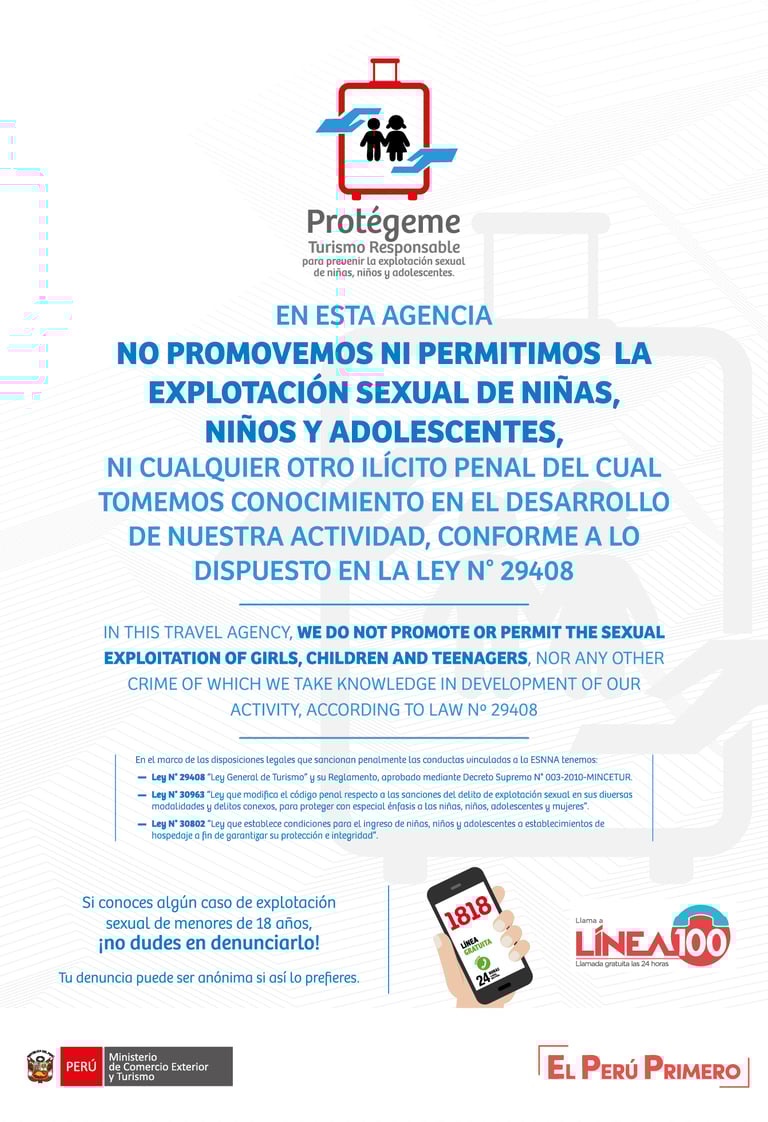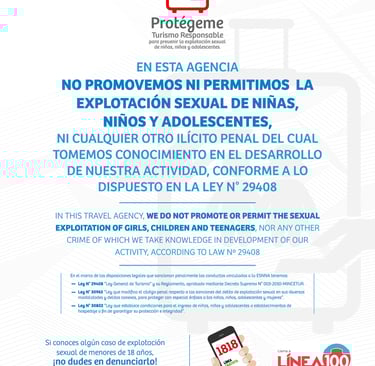 "Tourism promotes childhood and adolescence without sexual exploitation, therefore, at Malinowski Jungle Lodge we do not accept any act that favors the sexual exploitation of girls, boys, and adolescents".